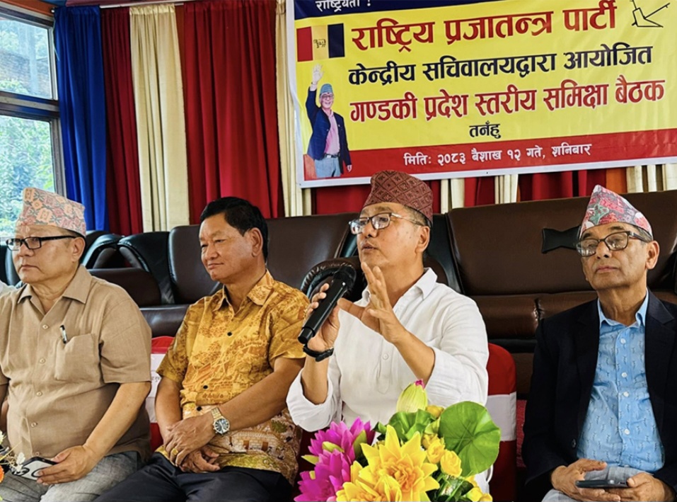 प्रहार समाचार । तनहुँ, १३ वैशाख २०८३ आइतबार । राष्ट्रिय प्रजातन्त्र पार्टी (राप्रपा) का अध्यक्ष राजेन्द्र लिङ्देनले राप्रपालाई राजाको दल भनेर लगाइँदै आएको आरोपको खण्डन गर्दै त्यसलाई गलत बुझाइको संज्ञा दिएका छन्। शनिबार तनहुँमा आयोजित गण्डकी प्रदेशस्तरीय निर्वाचन समीक्षा कार्यक्रममा बोल्दै उनले राजसंस्था कुनै पार्टीको अधीनमा नहुने र त्यसलाई दलसँग जोडेर प्रचार गर्नु राजनीतिक भ्रम सिर्जना गर्ने प्रयास मात्र भएको बताए।